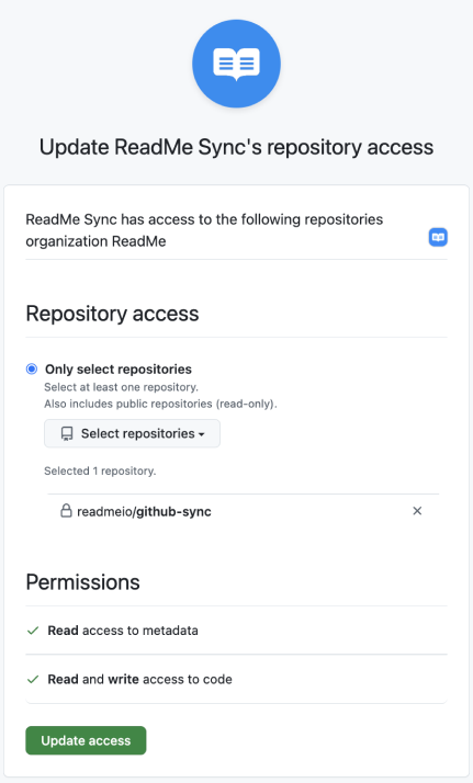 2) Then, you'll need to install the ReadMe Sync GitHub App.