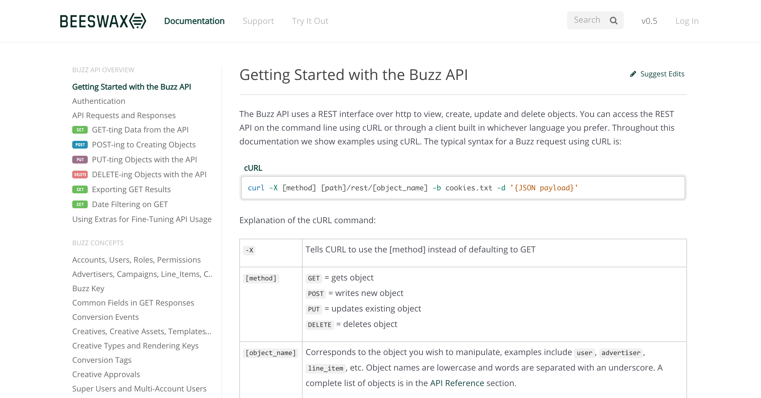 Using the Beeswax "Buzz" API our customers have a RESTful system for managing their business objects, such as campaigns, budgets, creatives, and ad targeting. This is where most of the "work" takes place in the advertising workflow.