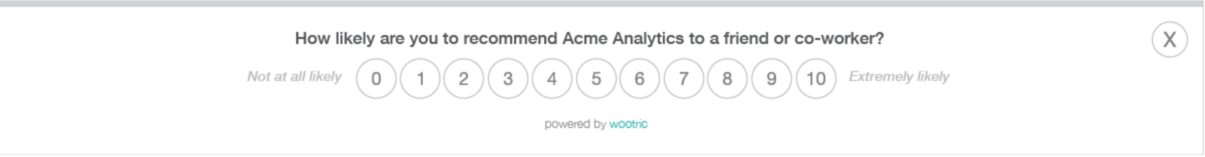 A lot of NPS scores go through email. But after seeing Wootric’s NPS on Buffer, we were immediately drawn in by the simple, clean design. With a few lines of code, Wootric adds a pop-up to the bottom of users’ screens. It was easy for us to install and unobtrusive for our customers.