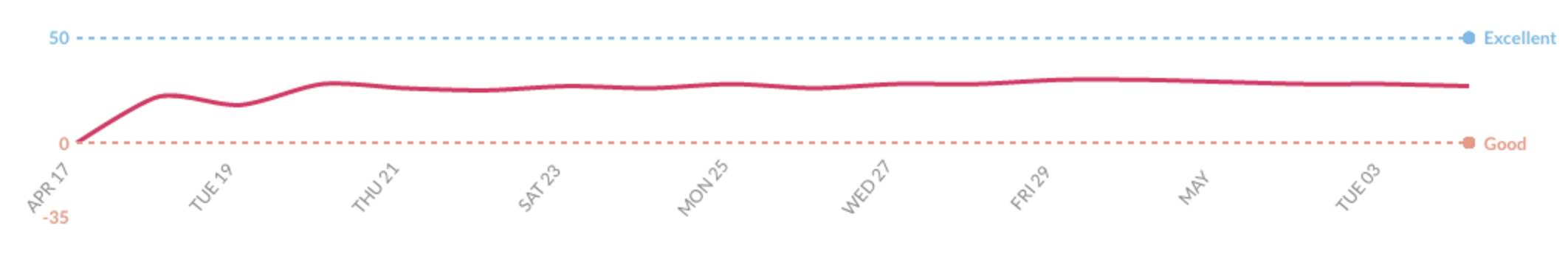 There’s a lot of debate about the best ways to interpret an NPS. Some general guidelines can be found here. Some suggestions say that over 0 is good, over 30 great, and beyond that excellent. The best comparison is supposed to be against others in your industry. Since we don’t plan on doing NPS testing on our competitors, the raw score isn’t all that important to us. If you’re curious, after two weeks we’re floating between 28-30. We’re happy with that score for now, and it’s higher than we were expecting, but our goal is to improve the score each time rather than to hit a specific number.