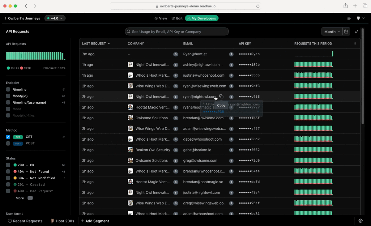 Behind every API call is a real person trying to do real things, and we want to give you the tools to help each of your developers. If it’s a developer's first time using your API, they want a nice getting started guide and their API key so they can make their first successful request. But if it’s their 100th time on your docs and the API is down, they’ll need a different experience.