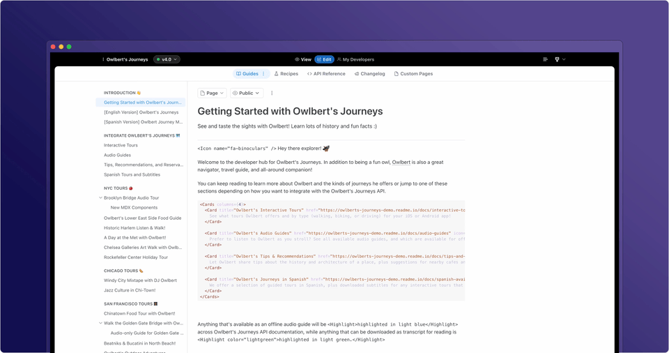 If you want to catch up on the launch and see product demos, tune in here for a 15-min announcement (my cohost for this might be an owl). We’re excited to hear what you think about the new ReadMe, so feel free to reach out to our team directly at support@readme.io or say hi in our Slack community!